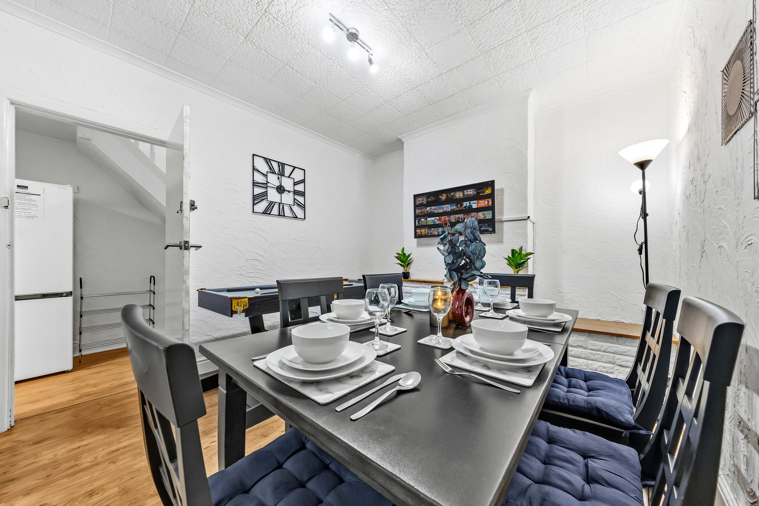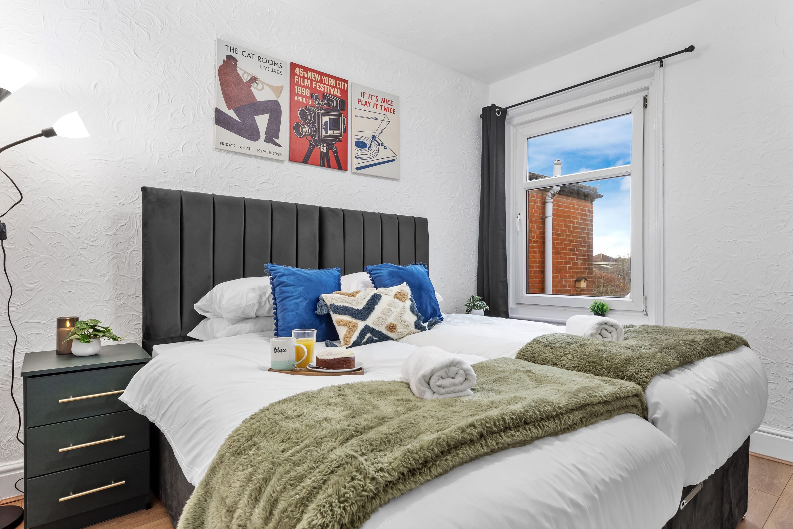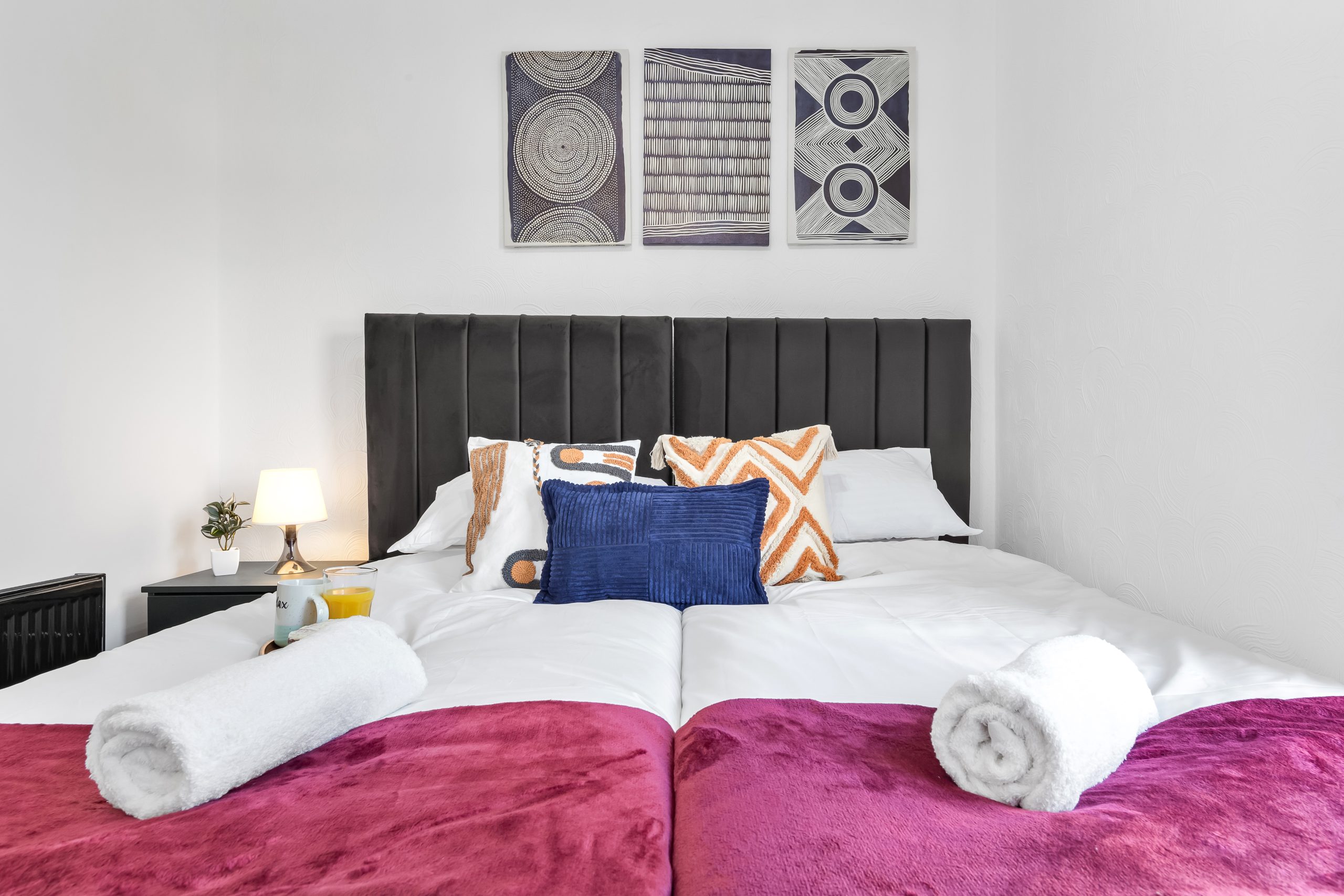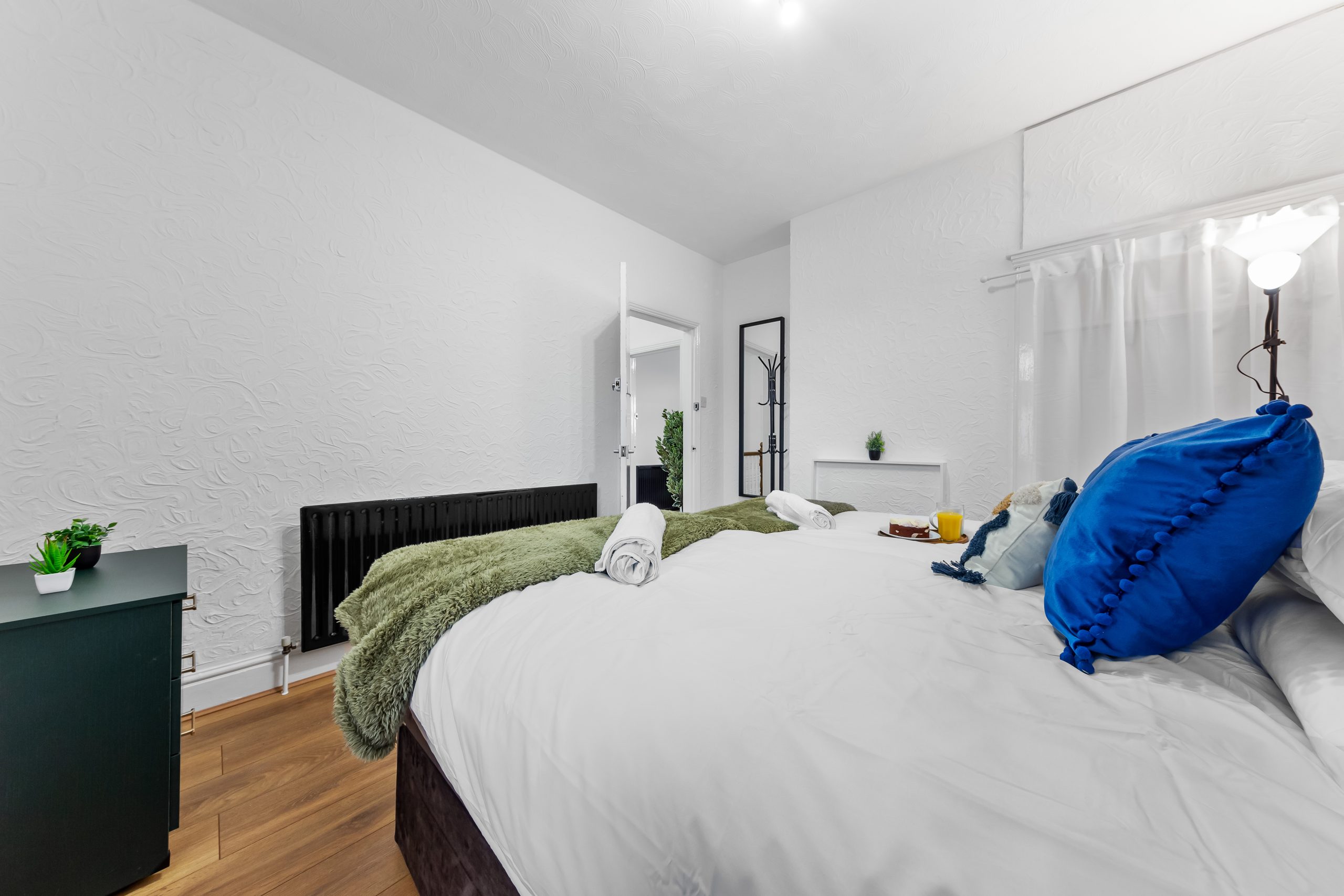 This spacious 3-bedroom house sleeps up to 9 guests and features flexible bed configurations, two bathrooms (including en-suite), superfast Wi-Fi and private gated parking. A fully equipped kitchen, dedicated dining area and comfortable living space make it well suited to extended work stays.