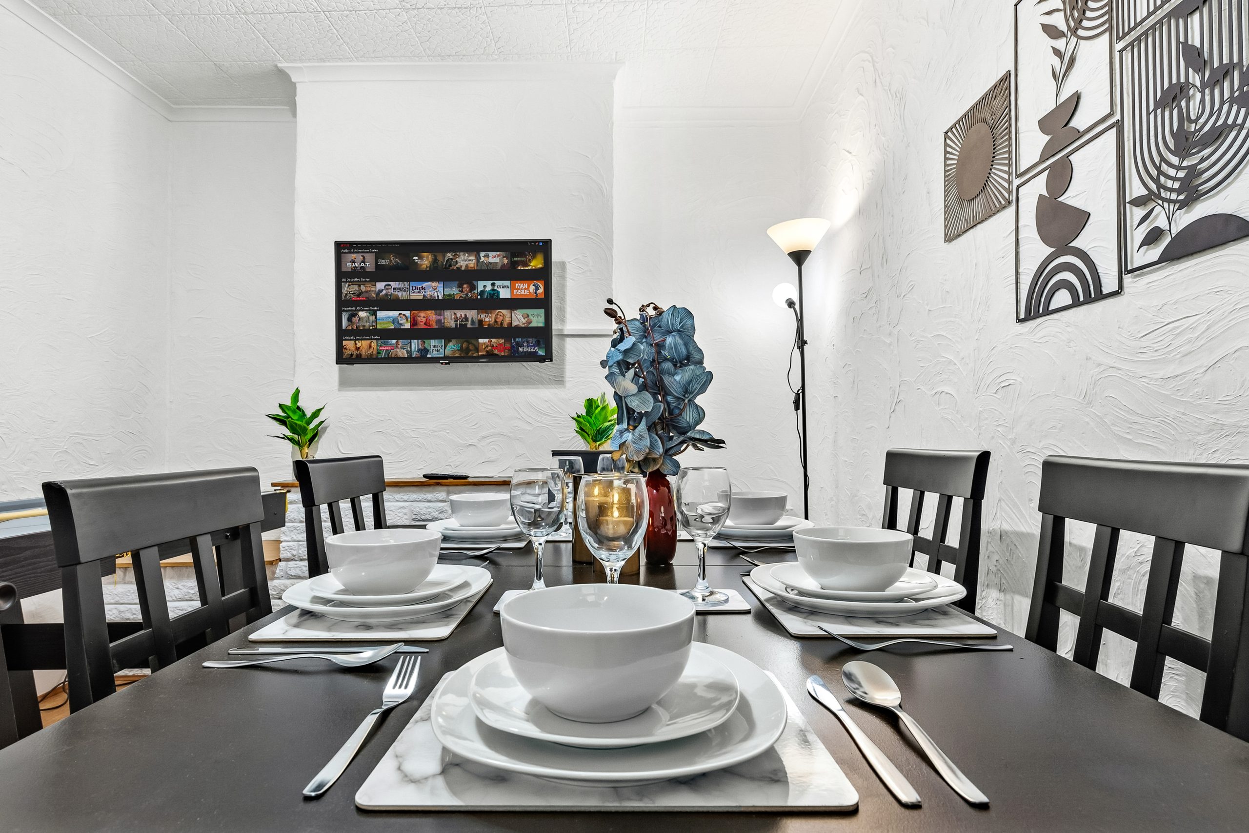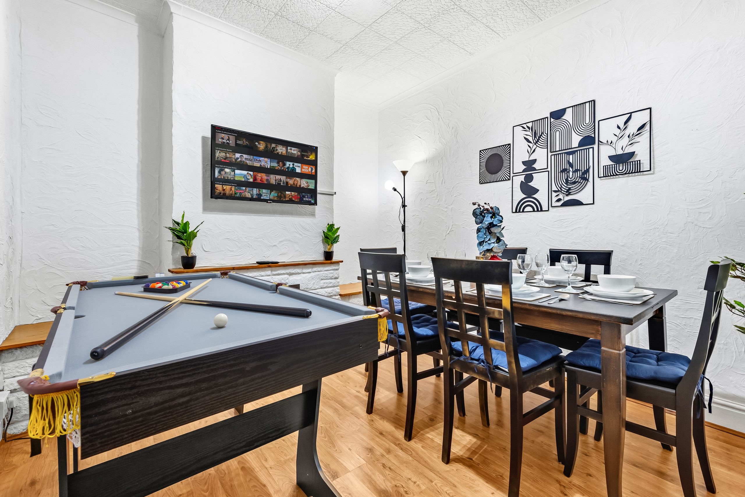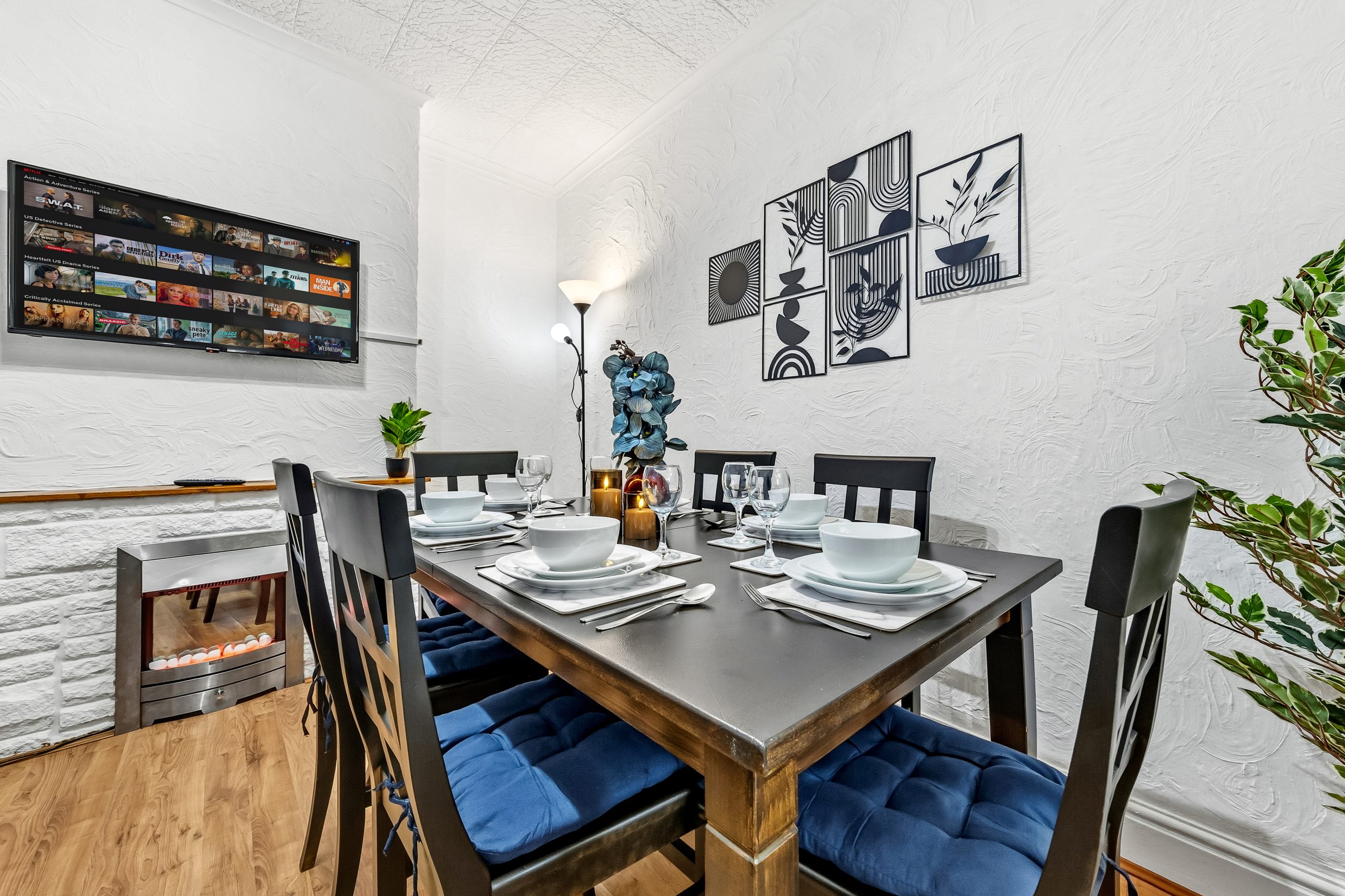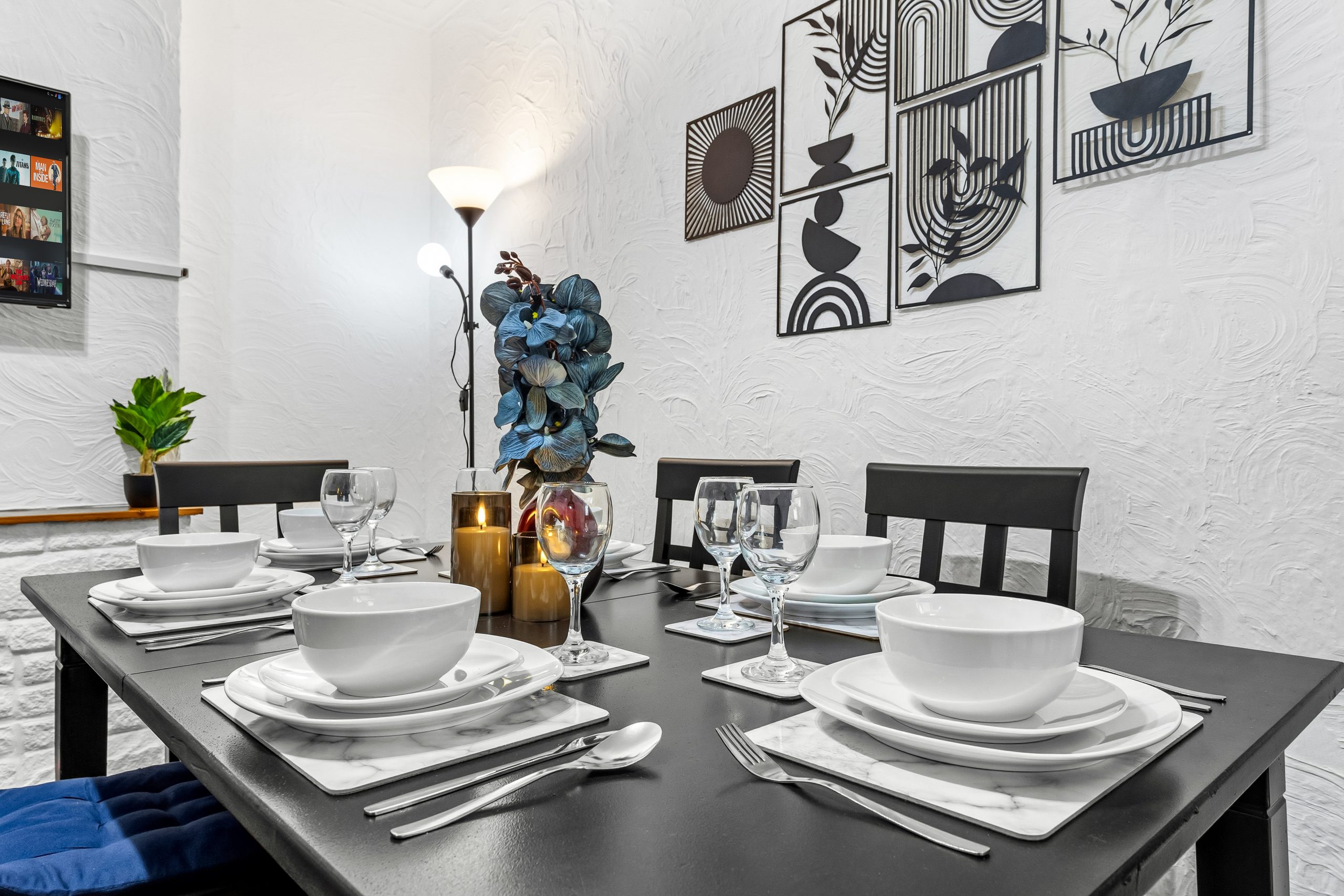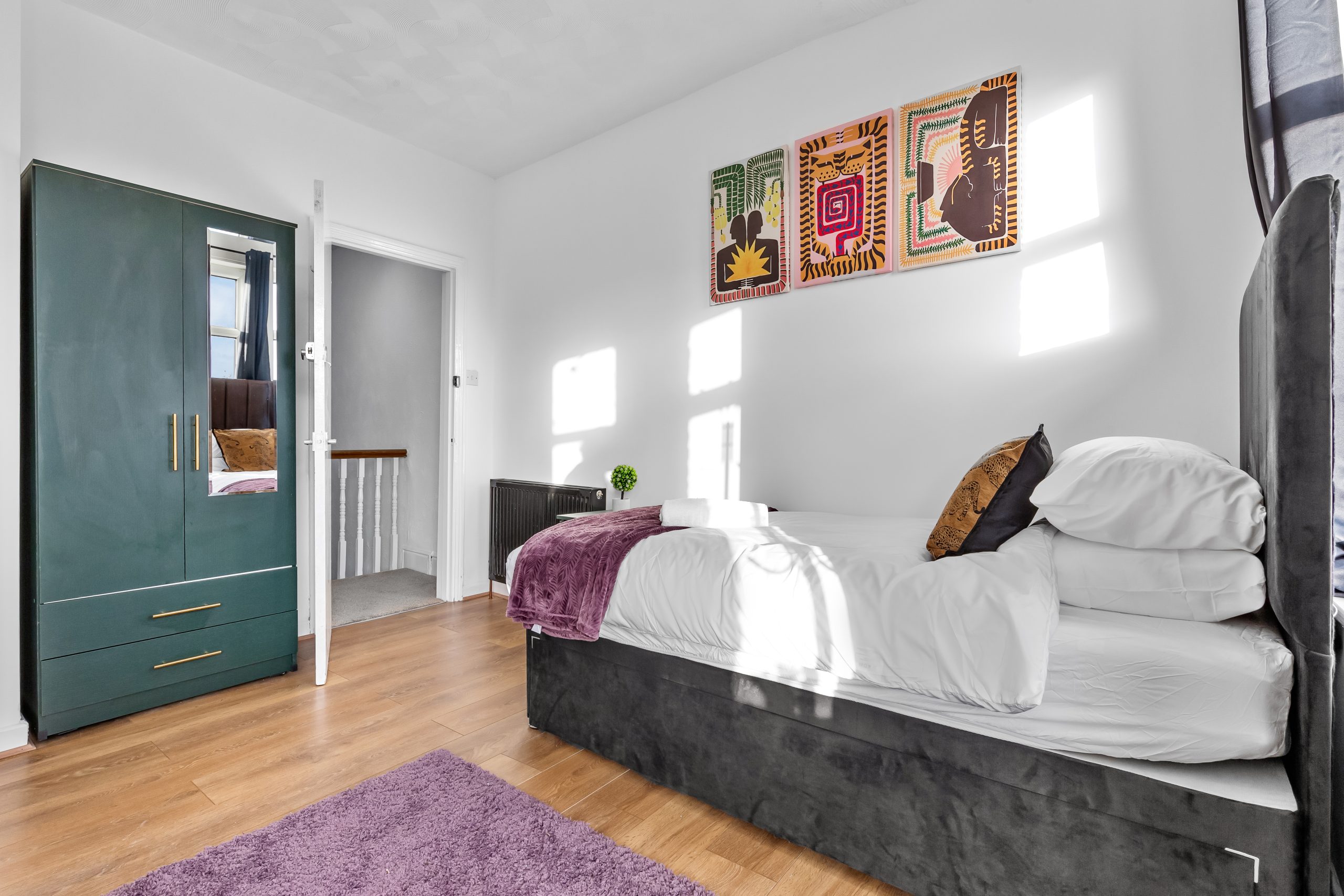 This spacious 3-bedroom house sleeps up to 9 guests and features flexible bed configurations, two bathrooms (including en-suite), superfast Wi-Fi and private gated parking. A fully equipped kitchen, dedicated dining area and comfortable living space make it well suited to extended work stays.